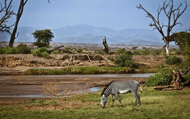 The peaceful atmosphere and the authentic  wilderness   experience set   it apart from the better known wildlife reserves in    Kenya, This   harsh, savagely beautiful wilderness depends on the steady   flow of    the Uaso Nyiro River for its existence; the river waters a wide     variety of  animal species not found south of the Equator, including     the majestic Beisa  Oryx, the reticulated giraffe, the thin-striped     Grevy’s zebra, and the  ‘giraffe-necked’ gerenuk antelope, which stands     on its hind legs to feed.  Elephant, buffalo, lion and leopard can all     be seen along the river, and the  400-plus species of birds are     positively spectacular.