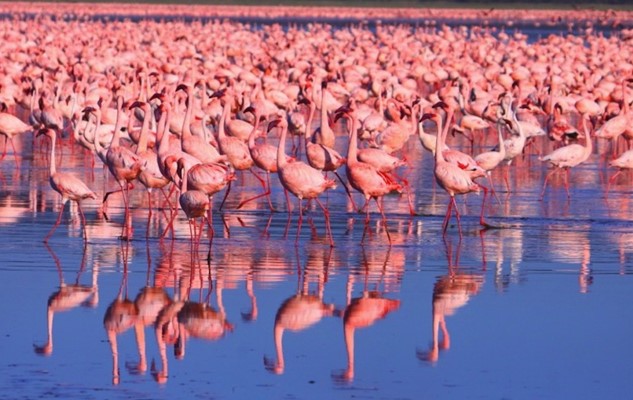 This morning enjoy a drive to  Lake a     world heritage site  famous for its million plus flamingo population     and an ornithologist’s heaven  with over 450 plus bird species. When     conditions are right, the lake offers one  of the world's most     spectacular wildlife sights: brilliant pink flamingos as  far as the eye     can see. Game  viewing in the Park is fascinating with guests     having the opportunity to watch  wildlife at close range, but without     encroaching on their space. Scout the  magnificent yellow-barked acacia     trees for the elusive napping leopards. Look  for incredible wildlife,     such as the endangered Rothschild’s giraffe, white and  black rhino,     lion, buffalo, hippo, waterbuck and baboon.